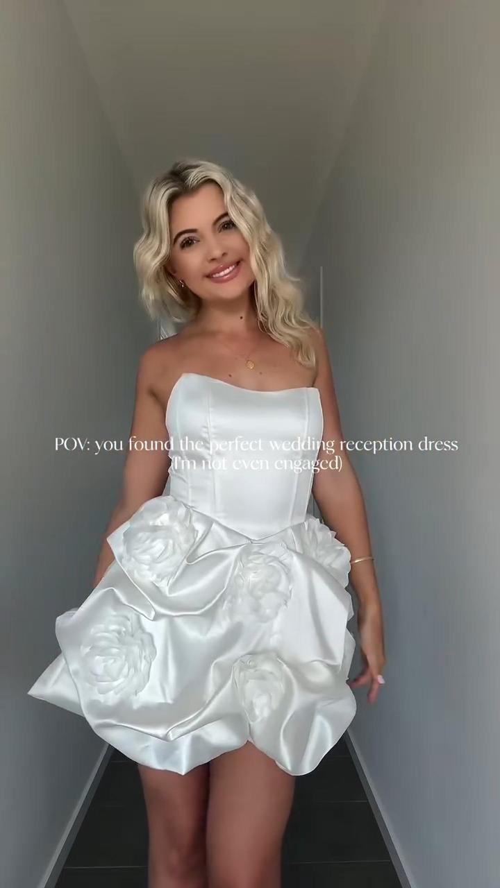 Pax Strapless Flower Satin Mini Dress